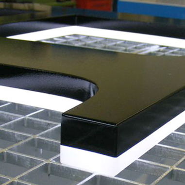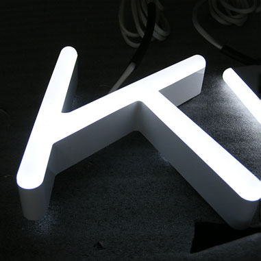 Voll­acryl LED Buch­sta­ben mit kom­plett gerun­de­ten Spie­gel mit fei­nem Frä­ser-End­schnitt.