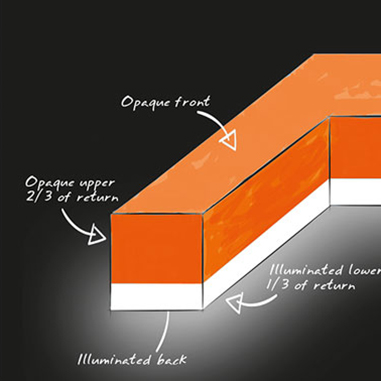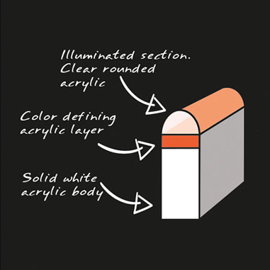 Defi­nierte LED-Far­ben für pas­sende Ersatzbuchstaben*